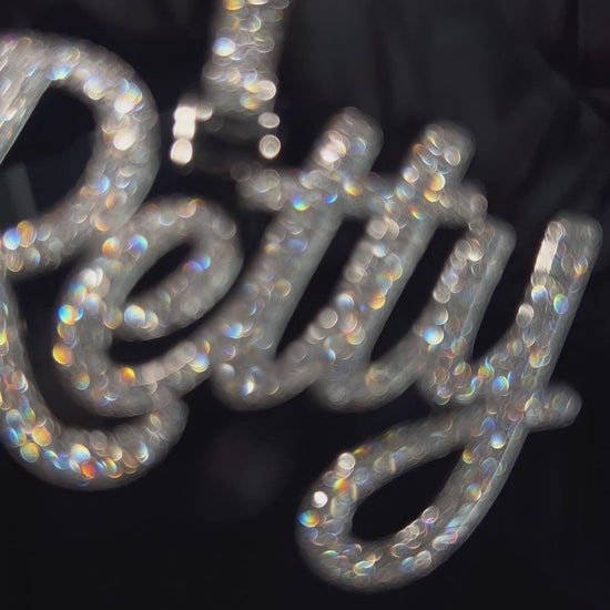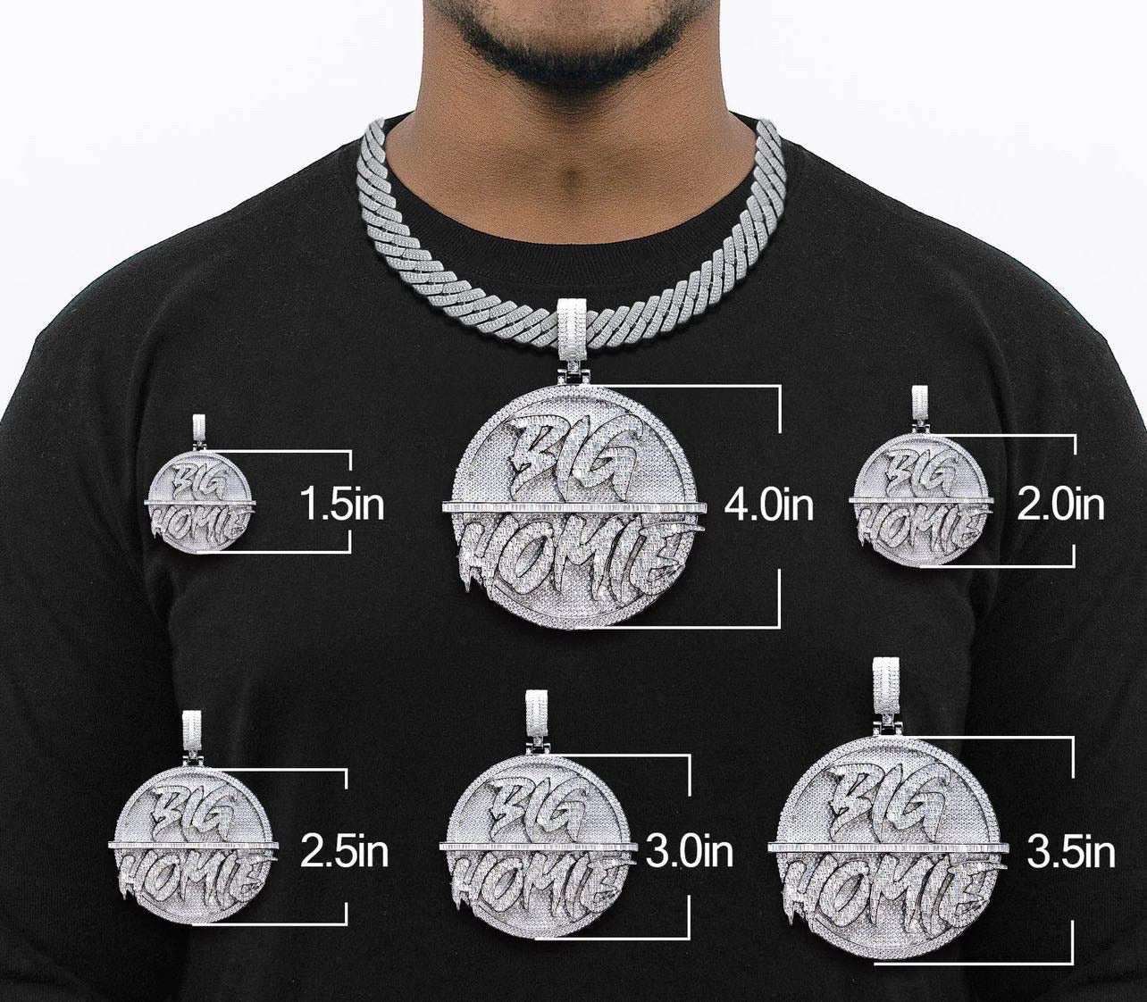 Each character is between 1.35 inches in height not including the Bail. Can fit up to a 19mm width chain. The chain shown in the picture is a 4mm tennis necklace and is not included with purchase.